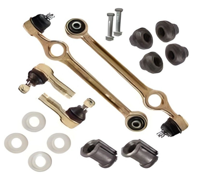 2عدد طبق بوش لاستیکی ، 2 عدد سیبک (چپقی) فرمان ، 4عدد لاستیک تعادل و 2 عدد لاستیک چاکدار(موجگیر) ،4 عدد محافظ بوش طبق و 2 عدد پیچ و مهره طبق